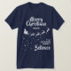 Montrez à quel point vous croyez à la magie de Noël et du Père Noël avec ce t-shirt de la famille de Noël assorti à la silhouette blanche de Père Noël traîneau avec ses rennes, volant dans une traînée d'étoiles. La légende sur le dessus lit Joyeux Noël en blanc écrit à la main. Le texte, dans une police blanche élégante, est facilement personnalisable avec vos souhaits, année, nom de famille ou nom d'entreprise. Cette chemise fait la tenue de Noël parfaite pour les dîners et les réunions de famille ou peut être porté comme une tenue de Noël du personnel d'affaires