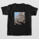 Fermez-vous vers le haut de la photo du T-shirt noir d'enfants de zèbre