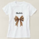Pour un t-shirt léger. Décoré d'un arc avec empreinte de léopard. Personnalisez et ajoutez votre nom. Texte noir.