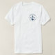 Le design personnalisé des t-shirts nautiques présente un design simple et élégant de style bleu marine côtier sur l'avant et l'arrière avec accent d'ancrage du bateau et message de bienvenue à bord sur le dos. Personnalisez le texte personnalisé avec le nom du bateau, du propriétaire / capitaine du bateau, de l'emplacement ou d'autres termes préférés. La couleur bleu marine peut être modifiée.