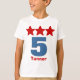 5ème Le garçon d'anniversaire tient le premier rôle les ÉTOILES ROUGES faites sur commande du nom V03B de grand nombre sur l'idée mignonne d'anniversaire de chemise BLANCHE avec un grand nombre entourées par des cercles de dentelle pour d'un vieux l'anniversaire garçon de cinq ans spécial. Ajoutez le nom du tarte de cutie ! Tout le texte est personnalisable.