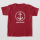 T-shirt garçon avec votre nom personnalisé, nom du bateau ou autre texte et une ancre marine personnalisée en blanc sur rouge. Fait un grand cadeau pour toute occasion.