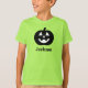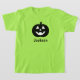 La chemise d'Halloween vert citron (peut être modifiée) comporte un citrouille Jack-o'-lantern éffrayant-mignon noir et blanc et du texte noir personnalisé qui peut être personnalisé avec le nom de votre enfant.