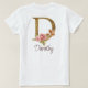 T-shirt Nom personnalisé Or Feuille Rose Blush Lettre D