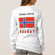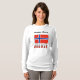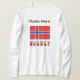 Le lettrage rouge et enneigé indique NORWAY sous ce drapeau norvégien avec un arrière - plan rouge et bleu foncé Scandinave, ou Nordic, Cross. Ci-dessus est un endroit pour ajouter votre nom pour personnaliser votre look. Ou, ajoutez le nom de quelqu'un d'autre pour un cadeau customisé. Le t-shirt féminin à manches longues personnalisé est idéal pour les réunions familiales norvégiennes.