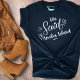 Conception moderne et mignonne pour la fête de mariage ou pour une escapade d'enterrement de vie de jeune fille. Les mots tourbillonnants "Nous avons dit Amelia Island" sur un tee-shirt noir, ont un cœur et sont sûrs d'être remarqués. Destination de fête d'enterrement de vie de jeune fille....Amelia Island, Peut être porté pour le dîner de répétition, et avec votre cortège de mariage.