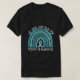 Cette conception comporte un arc-en-ciel coloré avec les mots "Nous portons du bleu clair pour la sensibilisation à la Trisomie 18" en soutien aux personnes touchées par la condition.