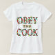 Obéissez à la cuisine de Cook drôle disant décoré avec des lumières de Noël colorées en rouge, vert, jaune et bleu. Vous devez obéir au cuisinier si vous voulez manger votre dîner. Par MomsRetro.