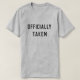 This is a simple and sweet T-shirt that says OFFICIALLY TAKEN in bold type, making it perfect for the newly engaged man.
