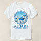 Oia Blue Dome, Santorin à l'intérieur d'un cercle de motifs grecs, un T-shirt blanc pour hommes. Ce design insulaire grec est à votre disposition si vous souhaitez en profiter pendant votre séjour à Santorin. Cette conception présente également une scène vue sur la mer avec des mouettes volantes.