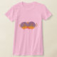 T-shirt pour femmes avec deux inséparables de dessins animés debout beak to beak. Art original en acrylique sur papier. Un cadeau génial qui a l'air peint main.