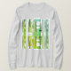 Le motif vertical, inspiré du style design moderne du milieu du siècle, présente des formes géométriques dans les tons verts, de la lumière au foncé, en chaux, en varech brillant et en olive foncée, avec un effet "estompé" ou "estompé". Photo ici sur un t-shirt gris cendré à manches longues, avec d'autres couleurs et styles disponibles. Il y a aussi une plage, une ambiance tropicale au design, qui projette une qualité lumineuse, festive et artistique pour un ajout versatile et tendance à vos vêtements décontractés et quotidiens (que ce soit à la maison, en socialisation avec des amis, en jouant au sport ou en courant sur la ville). Le design de chemise comme "art portatif" express également un sens de votre style individualisé, contribuant à un sentiment d'être "ensemble" et créatif dans vos choix d'armoires personnelles.