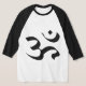T-shirt raglan à manches ¾ blanches et noires de base pour hommes avec le symbole de Om, la syllabe sacrée qui est chanté dans les prières et mantras hindous et bouddhistes. Om symbolise la création, la destruction et la préservation. Voir l'ensemble de la collection Vêtements des Lumières dans la section FAVORS DU PARTI.