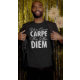 Une devise pour aujourd'hui et tous les jours. En latin, Carpe Diem signifie "saisir la journée", profiter du moment, vivre pour aujourd'hui. Le texte dit : "On va carper ce diem d'effin." La couleur du texte est personnalisable.