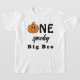 Orange One Spooky Dude Big Bro Halloween Matching Family Tshirt for a 1st Birthday Party - Celebrate your little dude's big one in a spooky and fun way this Halloween season with this cute orange and black retro smiley face pumpkin 1st Boo-Day Party theme. Featuring black, orange, and white classic Halloween colors. A smiley face pumpkin with lightning eyes adds to the fun, retro spooky season aesthetic. The whole family can wear matching tees to celebrate the little dude's first milestone birthday!