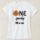 Orange One Spooky Dude Mom Halloween Matching Family Tshirt for a 1st Birthday Party - Celebrate your little dude's big one in a spooky and fun way this Halloween season with this cute orange and black retro smiley face pumpkin 1st Boo-Day Party theme. Featuring black, orange, and white classic Halloween colors. A smiley face pumpkin with lightning eyes adds to the fun, retro spooky season aesthetic. The whole family can wear matching tees to celebrate the little dude's first milestone birthday!