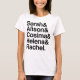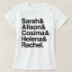 Ce T-shirt pour dames Orphan Helvetica présente Sarah et tous ses clones sur un T-shirt blanc.