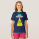 Ce superbe t-shirt de Noël pour enfants présente une image art numérique d'un vaisseau spatial alien décoré de lumières de Noël aux couleurs vives. A l'intérieur de l'OVNI qui donne par la fenêtre, il y a un alien vert aux yeux noirs portant un chapeau festif de Père Noël. Il y a un cône de lumière venant de la soucoupe volante. L'ombre d'un message est projetée vers la Terre. Le message est personnalisable afin que vous puissiez le personnaliser avec votre propre texte. Salutations de vacances de l'espace pour tous les Terriens.