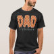 Ce design comprend un t-shirt noir avec le mot "DAD" dans une grande police stylisée remplie d'un motif à damiers rouge et jaune. Ci-dessous "DAD" est le mot "paternité" dans un script bleu clair plus petit, flanqué de petites images cardiaques