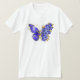 Bijoux, bleu, saphir, papillon aux fleurs pétillantes avec aile décorée de bleu, fleurs précieuses avec feuilles d'or sur arrière - plan blanc.