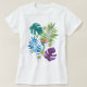 Feuilles tropicaux colorés de palmiers, monstère, fleurs de plumeria et oiseaux de paradis.