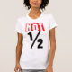 Un T-shirt avec un dessin exprimant l'expression anglaise britannique "not half" en mots et en fractions.