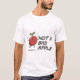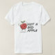 Illustration d'une pomme rouge avec un visage souriant et des feuilles verts au-dessus. La pomme est décrite comme un personnage, avec les bras et les jambes, sautant dans l'air avec une expression joyeuse.