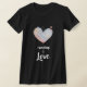 Un T-shirt noir de femmes assez chics féminines impressionnantes comportant un coeur girly d'aquarelle bleue rose blanche assez en pastel d'éclaboussure de bonbon qui a les mots "FONCTIONNER SUR L'AMOUR" sous lui.