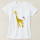 Chemise mignonne et drôle personnalisable avec une girafe mignonne grignotant sur une fleur pourpre et tenant quelques fleurs avec sa queue tout en patinant avec des patins de rouleau avec des roues faites de fleurs.
