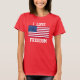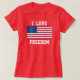 Le t-shirt de base pour femmes est montré en rouge avec un imprimé patriotique du drapeau américain. Texte : I Love Freedom Customisez cet article ou achetez tel quel.