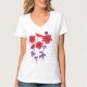 T-shirt décoratif floral pourpre et rouge graphique de dames de pavots. Basé sur le pavot bordé en lambeaux. Uniquement conçu par Sarah Trett.