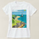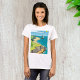 Paysage pittoresque autour des falaises avec voilier. Ce design semble vraiment efficace sur ce T-shirt féminin