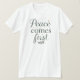 Set your intentions and protect your tranquility with this beautiful and elegant graphic. The simple, graceful script "Peace comes first" serves as a powerful and sophisticated reminder to prioritize your mental well-being and inner calm above all else. It's the perfect, minimalist affirmation for a life filled with peace, mindfulness, and self-care.