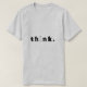 **"Think" T-Shirt** 💭 Un simple rappel pour défier votre esprit et embrasser vos pensées avec ce t-shirt **"Think"**. Parfait pour les curieux, les penseurs et les créateurs qui n'arrêtent jamais de poser des questions ou d'explorer de nouvelles idées. Portez-le comme un énoncé pour rester conscient, rester réfléchi et continuer à évoluer - parce que les grandes idées commencent par une seule pensée. 💡 ✨