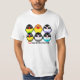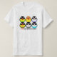Un dessin mignon de bande dessinée de personata d'agapornis, également connu sous le nom de perruche noir-masquée ou perruche jaune-colletée. Six oiseaux avec six couleurs différentes de plumage ; Le premier est un type sauvage couleur verte et les autres cinq sont des oiseaux avec des mutations bien connues de couleur : lutino, violette, olive, mauve et bleu (turquoise, cyan). Ce T-shirt sera un cadeau prisé pour chaque propriétaire noir-masqué de perruche.