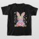 Colorful personalized Easter bunny shirt featuring custom name with whimsical rainbow bunny design, hearts, flowers, and Easter eggs. Perfect for little girls' Easter celebrations, egg hunts, spring festivals, holiday photoshoots, and Easter Sunday church. Simply add your child's name to create a magical, one-of-a-kind Easter outfit.