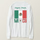 Personalized women's long sleeve t-shirt featuring the Mexican Flag, in green, white, and red, with the word MEXICO below in a design that follows the flag. You can add a name in the space provided for a special touch, in green letters. Design shows on front and back of tee. Great for celebrating family reunions, gift for travelers, and heritage gifts. Wonderful for celebrating Cinco de Mayo. Share your culture, heritage and ancestry.