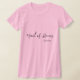 Le t-shirt femme est présenté dans un style col ras du cou et manches courtes en rose avec un texte de couleur noire : Témoin de mariage et un nom d'échantillon personnalisé.