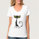 Ce T-shirt à col V pour femmes personnalisé présente un chat noir "atomique" moderne rétro du milieu du siècle avec de grands yeux jaunes et une queue bouclée. Vous pouvez facilement modifier l'orthographe du texte, le style de police, la couleur et la taille avec le bouton Personnaliser Zazzle.
