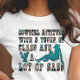 Voici notre chemise humoristique "Cowgirl Attitude" qui peut être customisée avec un message sur le dos. L'avant est ornée d'une drôle de cowgirl qui dit avec un jeu de couleurs turquoise et marron, tandis que le dos peut être personnalisé avec un sentiment ou une citation qui a une signification spéciale pour le porteur.