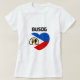 Unique Tagalog Philippine t-shirt with the word "Busog", which translates to "Full" (after eating). Creative design of the flag of the Philippines outlined as a heart, with a fork and spoon nicely set on a plate.
