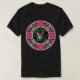 Photo personnalisée Noël animal chat Joyeux jours fériés Pun T-Shirt. Remplacez la photo à l'avant par les photos de vos chats d'animaux de compagnie. La photo est encadrée par un cercle contenant un motif joli, coloré et géométrique. Dans des couleurs chaudes de rose, orange et rouge, avec le bleu d'hiver et vert arbre. Le texte à l'arrière est un jeu de mots et dit "Nous vous souhaitons une Meowy Kitmas !", en vert. Un cadeau joyeux et festif pour votre père de chat, père ou pop. Célébrez votre nouveau chaton ou chat avec ce drôle de tee punny. Portez-vous à une fête de Noël en famille, à un dîner, ou pour des boissons, des collations et des grignotines avec des amis et votre bébé en fourrure. Un joyeux souvenir de Noël !