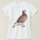 Un t-shirt avec un grand motif pigeon rouge isolé.