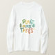 Un arrière - plan vert vif avec le texte "Plante Plus d'arbres" en caractères gras et colorés. Un simple contour d'un arbre se trouve dans le coin.