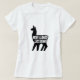 Plus de lamas ! Moins de drame ! Design noir et blanc. Texte de style comique à l'intérieur d'une silhouette d'un lama.
