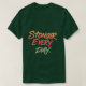 Ce t-shirt est composé de l'expression "Plus fort chaque jour" dans une police sans empattement audacieuse, chaque lettre alternant entre des couleurs vives et contrastées. Le design est dynamique et moderne, avec un arrière - plan bleu clair solide pour le contraste.
