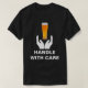 Photo d'un verre de bière, image de mains ou de palmiers humains, texte Handle with care. Drôle t-shirt unique pour hommes. Personnalisable . Vous pouvez modifier des images et modifier ou supprimer le texte modèle. N'oubliez pas de changer le genre, le style et la couleur du t-shirt. Amuse-toi bien !