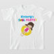 Awesome kids pool party custom t-shirts for a brunette girl's birthday party in the summer. Features a bright, fun pop of colors and an adorable child with brown hair swimming in an inner tube. Customize with your event title or children's name.