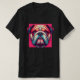 A Bulldog portrait rendered in vibrant neon colors. Graphic art that conveys a powerful, cool impression through complex line work and the contrast of pink, cyan, and white.