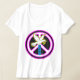 Bring a bold message of unity to the forefront with this contemporary pop‑art inspired design. A white dove rests over a classic peace symbol, paired with an olive branch and the word PEACE beneath it. Rendered in striking fuchsia, yellow, blue, and black tones, this artwork blends modern graphic energy with a timeless call for harmony. Perfect for anyone who wants to express hope, solidarity, and global awareness through wearable art.